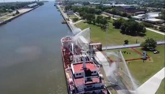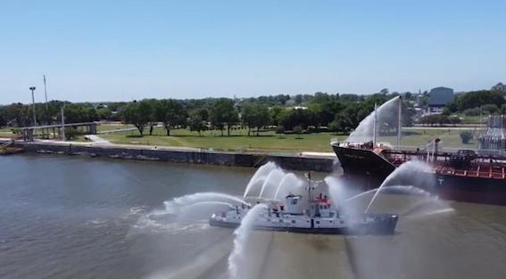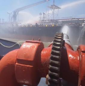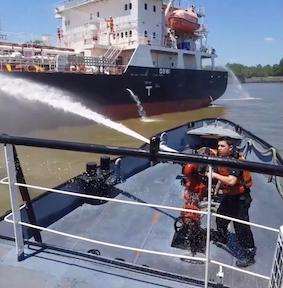 En primera instancia, intervinieron los bomberos de la empresa YPF accionando las torres hidrantes ubicadas en el muelle.
