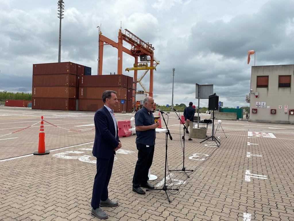 Quienes lo hicieron posible participaron del evento que se desarrolló en la misma terminal de contenedores de Tecplata. Allí estuvieron presentes el subsecretario de Puertos, Vías Navegables y Marina Mercante, Leonardo Cabrera; el CEO de Tecplata, Bruno Porchietto; el representante de Newport Management, Claudio Maissonave; el presidente del Consorcio de Gestión del Puerto La Plata, José María Lojo; el presidente del Ente Portuario de Santa Fe, Carlos Arese; directivos y personal de TecPlata y representantes sindicales.