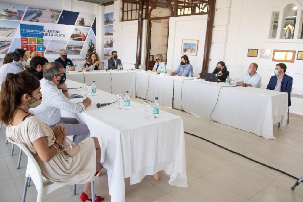 El Ing. José Lojo, Presidente del Consorcio Puerto La Plata encabezó el encuentro junto a Jessica Braver, Líder de Equipo de la Oficina de Coordinación ONU Argentina, Fernando Quiroga, Director General de Relaciones Internacionales del Consejo Nacional de Coordinación de Políticas Sociales y Hernan Ruggirello de Plataforma Argentina de Monitoreo para la Agenda 2030 (PAMPA 2030).