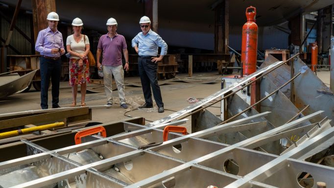 El presidente de Tandanor Ing. Miguel Tudino recibió la visita del Director Nacional de Planificación y Ordenamiento Ambiental del Territorio, Abelardo Llosa quien pudo observar el avance de los trabajos realizados en la construcción de cinco lanchas de aluminio para el Ministerio de Ambiente y Desarrollo Sostenible de la Nación.
