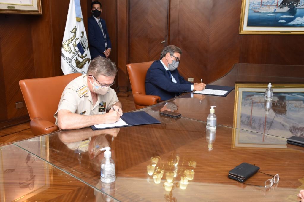 El Prefecto Nacional Naval, prefecto general Mario Farinón y el presidente de la Cámara de Actividades de Practicaje y Pilotaje, capitán Sergio Borrelli firmaron, esta mañana, en el Edificio sede de la Prefectura, un convenio marco de cooperación y asistencia técnica.