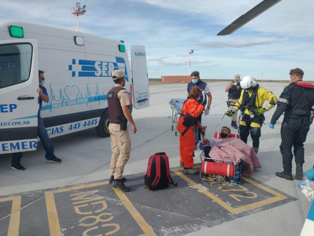 De inmediato, se montó el operativo para aeroevacuar al navegante: desde la Estación Aérea Comodoro Rivadavia, una de las que posee la Fuerza en el litoral marítimo y fluvial para brindar seguridad, salvaguardar la vida y controlar las aguas del país, despegaron un helicóptero, con rescatistas y la mencionada médica a bordo, y un avión para brindar apoyo en el operativo.