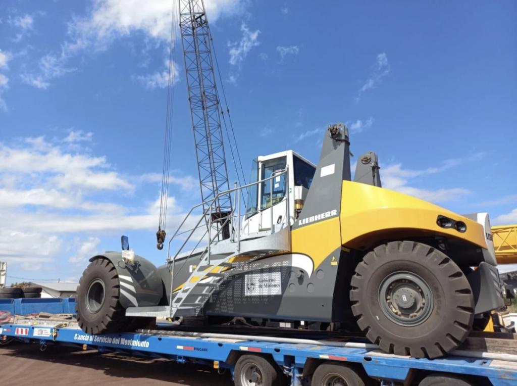 Llegó al puerto de Posadas el Reachstaker, vehículo que permitirá manipular y trasladar contenedores