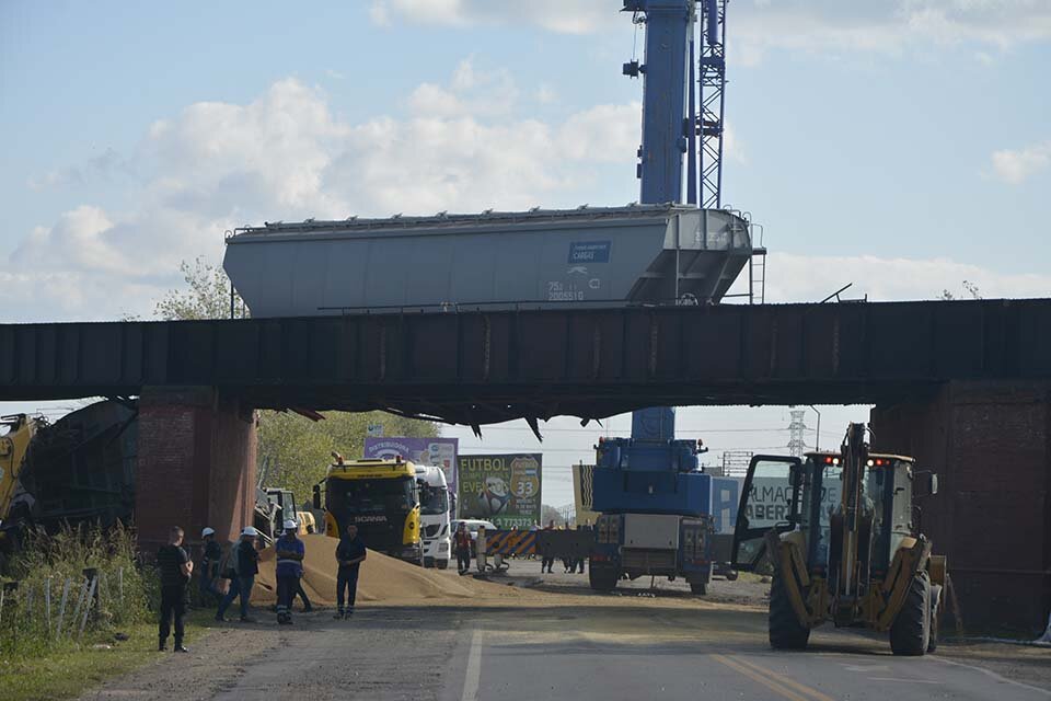 En el evento, donde no se registraron heridos, resultaron involucrados un total de cinco vagones cargados con soja de los cuales dos quedaron tumbados al costado de la Ruta Nacional 33 y tres unidades sobre el puente (dos semi tumbados y uno descarrilado).