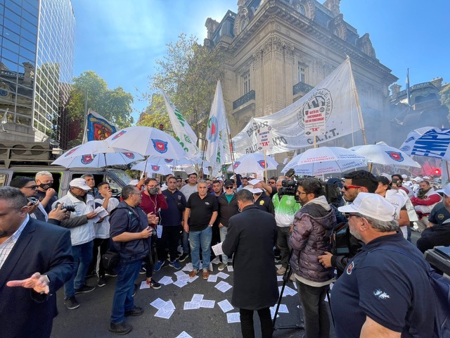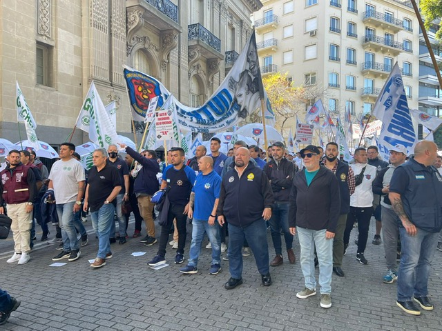 La marcha culminó con duro discurso de Schmid y con la entrega de un petitorio dirigido al Canciller Santiago Cafiero. “Si no hay respuestas concretas esto puede terminar en una escalada de otras medidas”, advirtió el sindicalista.