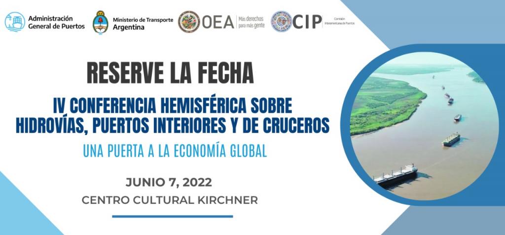 El próximo 7 de junio se realizará IV Conferencia Hemisférica sobre Hidrovías, Puertos Interiores y de Cruceros