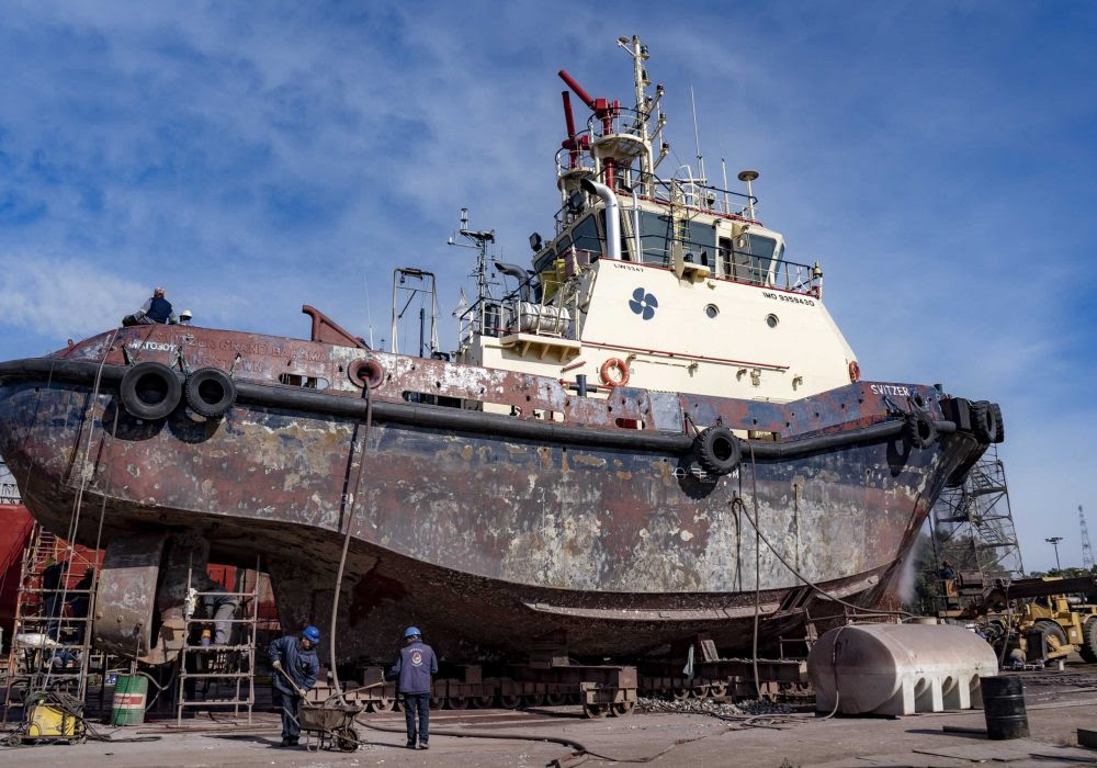 Los remolcadores Atlantic Dama y Svitzer Grand Bahama se suman a las gradas de Tandanor para realizar las siguientes tareas.