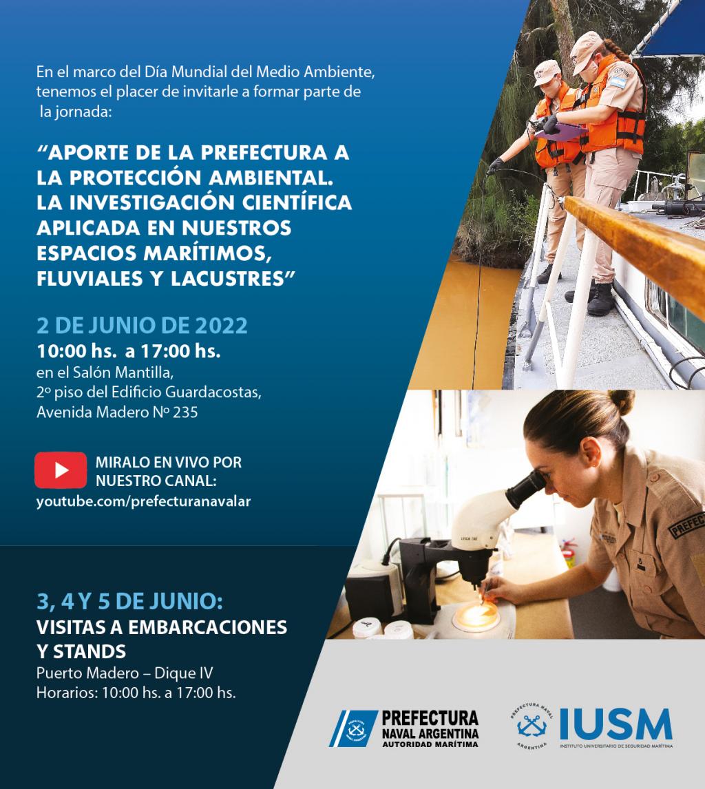 En ese sentido, el 2 de junio de 10 a 17 horas, se dictará la jornada “Aporte de la Prefectura a la protección ambiental. La investigación científica aplicada en nuestros espacios marítimos, fluviales y lacustres”, que se transmitirá por el canal oficial de YouTube de la Fuerza www.youtube.com/prefecturanavalar.
