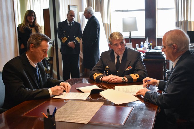 El convenio se firmó en la sede del SHN como parte de la celebración del día de la Hidrografía –en el 143° aniversario de la creación de la institución-, y participaron el interventor de AGP, José Beni, y el director del Servicio de Hidrografía Naval, Comodoro de Marina Lic. Valentín Alejandro Sanz Rodríguez.