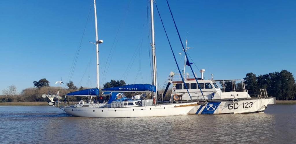Los uniformados observaron cómo personas realizaban pasamanos de pesadas bolsas, desde las viviendas hacia las lanchas. Esta maniobra determinó realizar un seguimiento controlado en el agua, donde se constató cómo la embarcación se “acodera” junto a un velero identificado como “Quo Vadis”.