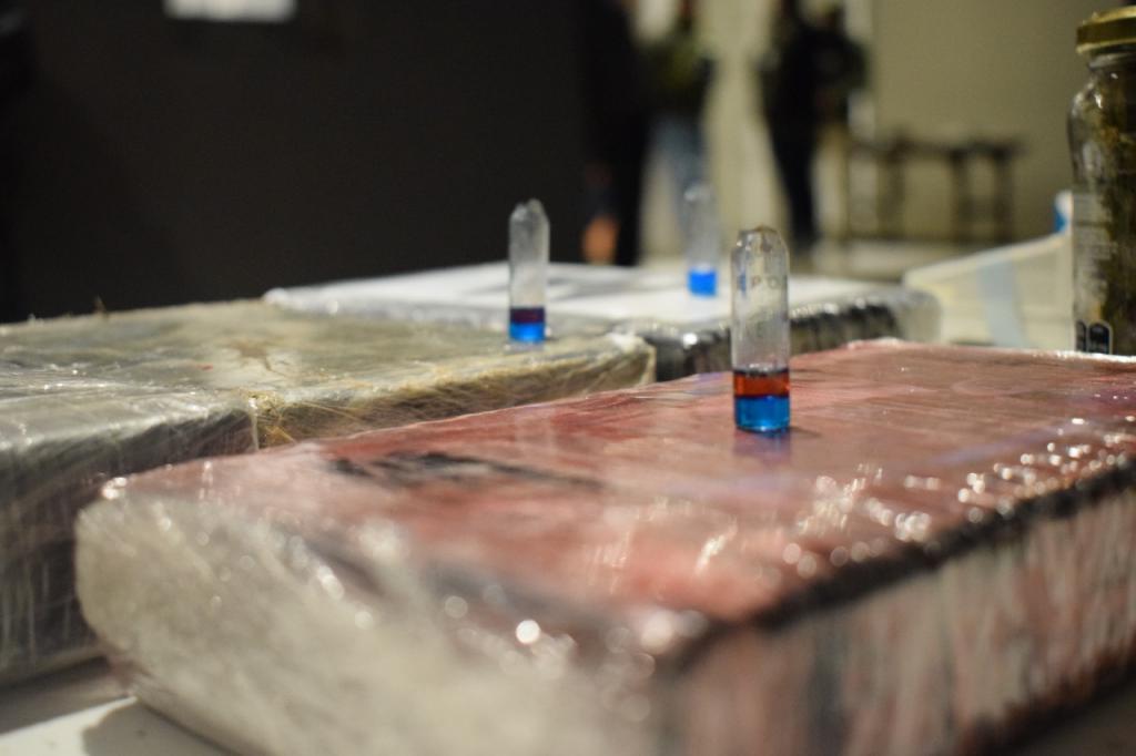 El magistrado Interviniente autorizó allanamientos en tres domicilios de Escobar, en los que se hallaron 34 “bolsos estancos” (brindan protección total ante agua, polvo y barro) que contenían 800 paquetes, sellados con plásticos y envueltos en piñatas rosas, con 889 kilos y 255 gramos de cocaína.