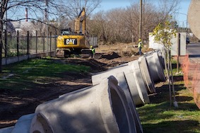 Son obras de entubamiento de desagües pluviales y construcción de vereda frente a la Escuela N°17