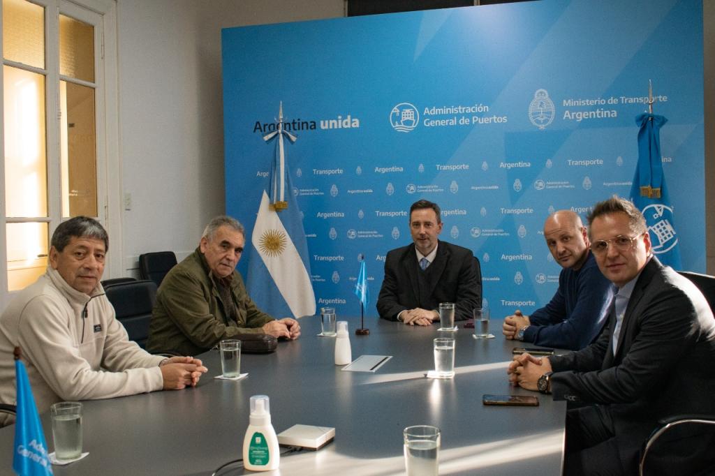 En el edificio central de la Administración General de Puertos se reunieron el interventor de la AGP, José Beni, junto al Secretario General del Sindicato del Personal Embarcado de Dragado y Balizamiento, Juan Carlos Schmid y a su Secretario Adjunto, Hugo Godoy, y los directivos de la Asociación de Personal de Dirección de Ferrocarriles y Puertos Argentinos, Leonardo Salom, referente de la Agrupación Verde y Blanca, y a Diego Salom, Secretario General de la Seccional Puerto Capital.