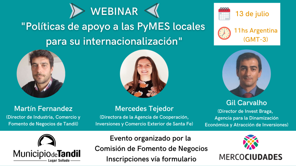 El evento tendrá lugar en el marco de las actividades de la Comisión de Fomento de Negocios de la Red, coordinada por la ciudad de Tandil y subcoordinada por las ciudades de Porto Alegre y Santa Fe, y se llevará adelante por la plataforma Zoom el día 13 de julio a las 11 hs Argentina.