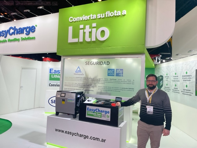 En cuanto a nuevos desarrollos y cuidado ambiental, visitamos el stand de la empresa Secco, que estuvo en la feria presentando soluciones con equipos de litio, ya sea autoelevadores, apiladores; como así también baterías de litio, para la conversión de equipos electrónicos que hoy trabajan con baterías de plomo ácido-.