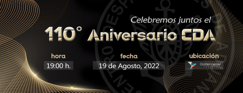 La celebración realizará el vierens 19 de Agosto en el Goldencenter, en donde se procederá a la Celebración Formal del 110° Aniversario de la Institución junto con el Día del Despachante de Aduana, en el Salón Fresno.