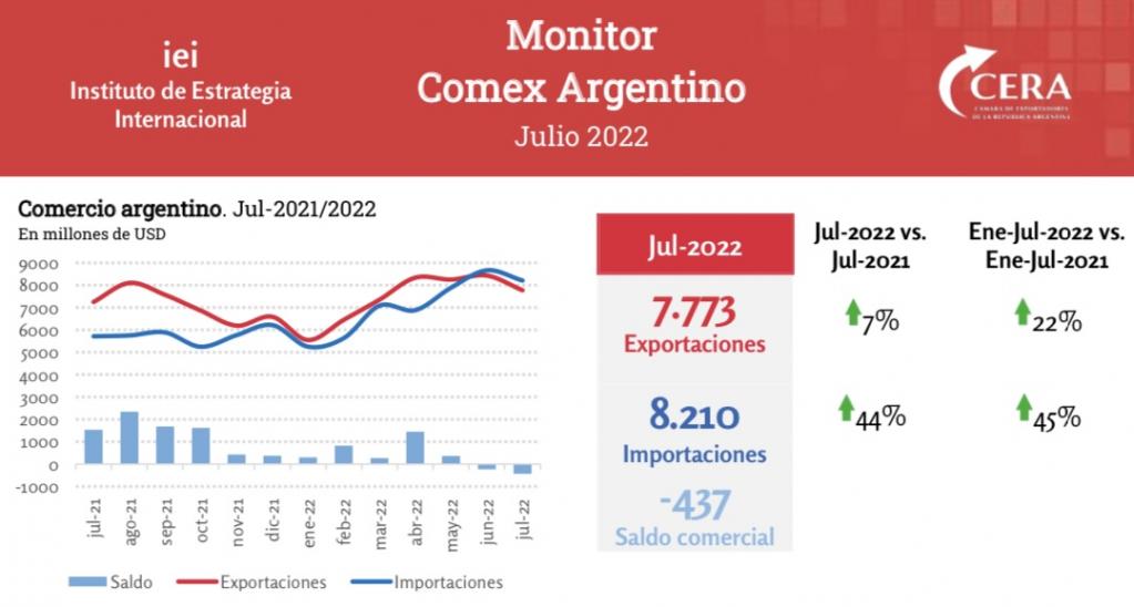 Al indagar en las cifras, observan desde la Cámara de Exportadores que el efecto precio fue importante tanto para las exportaciones como las importaciones. Los productos despachados desde Argentina disfrutaron de los mejores precios para un mes de julio, mientras que las cantidades estuvieron en niveles inferiores a los de 2021.
