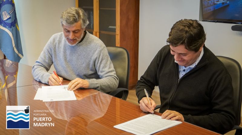 En ese sentido, el titular de la Administración Portuaria de Puerto Madryn, Arq. Enrique Calvo y el decano de la Facultad de Ciencias Económicas de la Universidad Nacional de la Patagonia San Juan Bosco, Mg. Julio Ricardo Ibañez, concretaron la firma de dos convenios entre ambas instituciones.