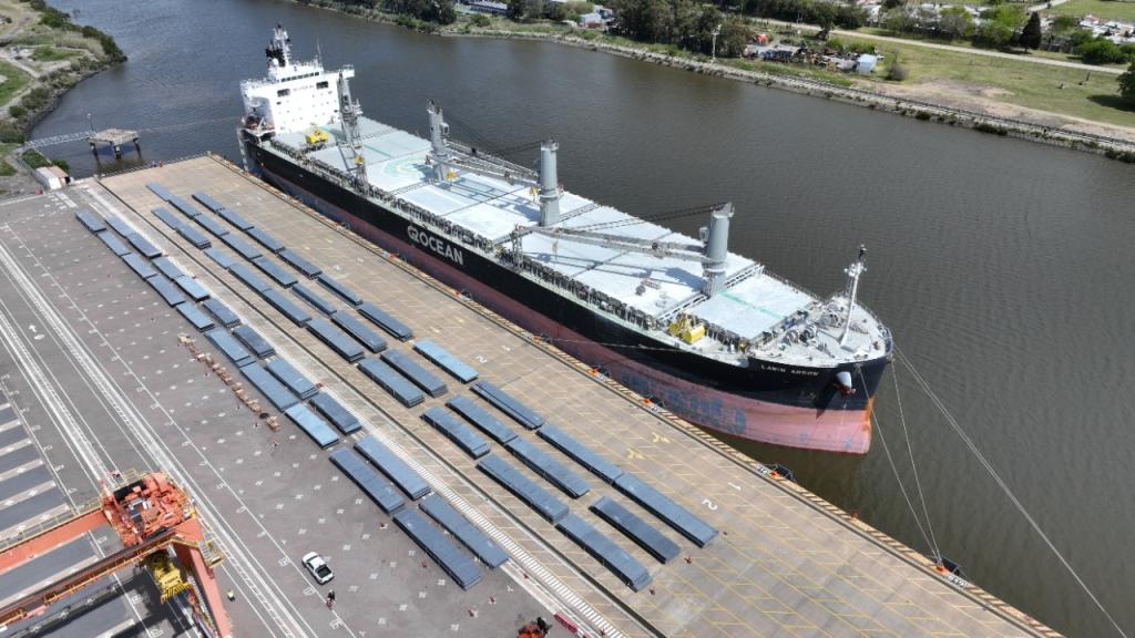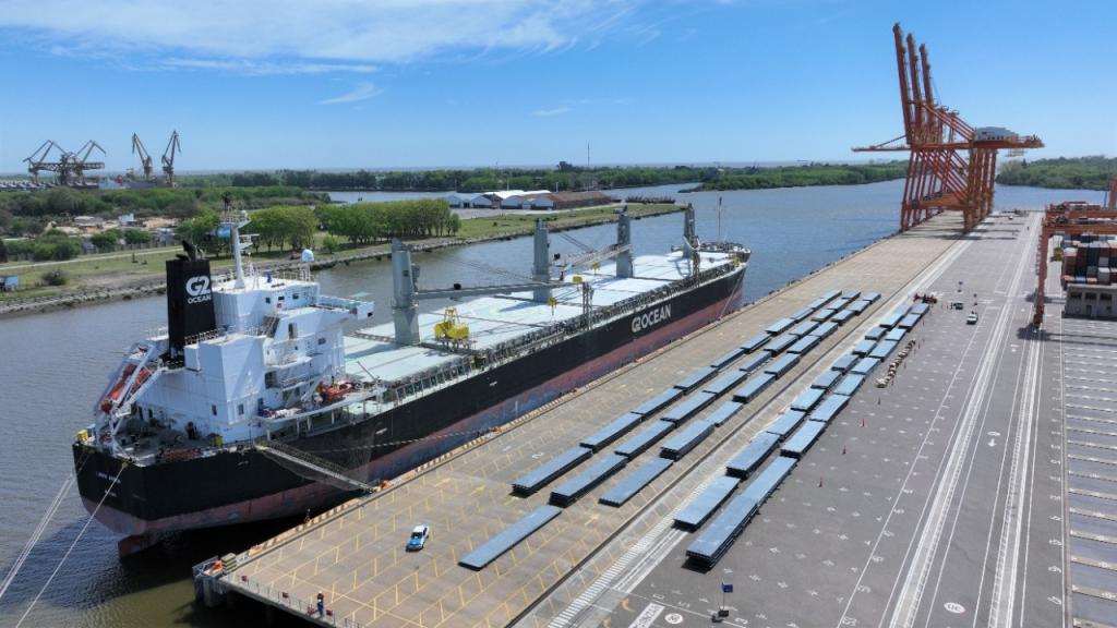 Este es el primer embarque de carga no contenerizada que arriba en la Terminal de TecPlata, operado por la naviera de capitales noruegos G2 Ocean, una de las mayores proveedoras de buques multipropósito a nivel global