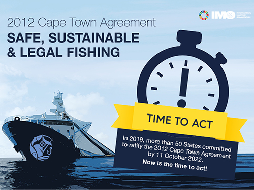El 11 de octubre de 2022 se cumplió el décimo aniversario de la adopción del Acuerdo de Ciudad del Cabo de 2012, el principal tratado internacional aplicable a los grandes buques pesqueros del sector cuyo objetivo es establecer normas de seguridad, al igual que el Convenio SOLAS hace con los buques mercantes. Se insta a los Estados Miembros de la OMI a que consideren la posibilidad de ratificar el Acuerdo lo antes posible.
