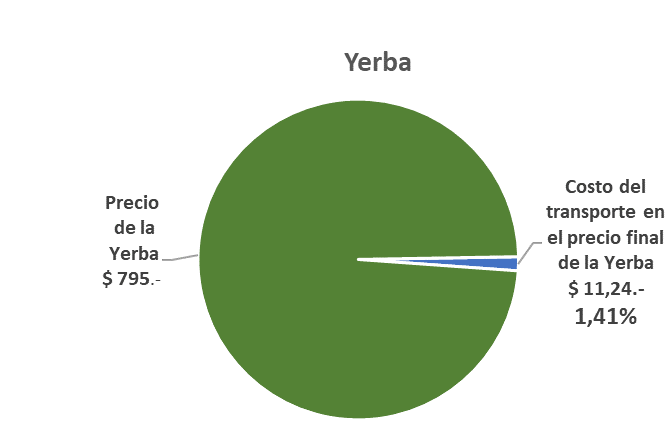 Tomando en cuenta que el kilo de yerba mate de primera marca en un supermercado es de $795 para el consumidor final, el cargamento total tendrá un valor de 22.260.000 pesos. Sobre el valor de cada kilo ($795), el peso del costo de transporte es de $11,24.-, lo que equivale al 1,41% del valor final.