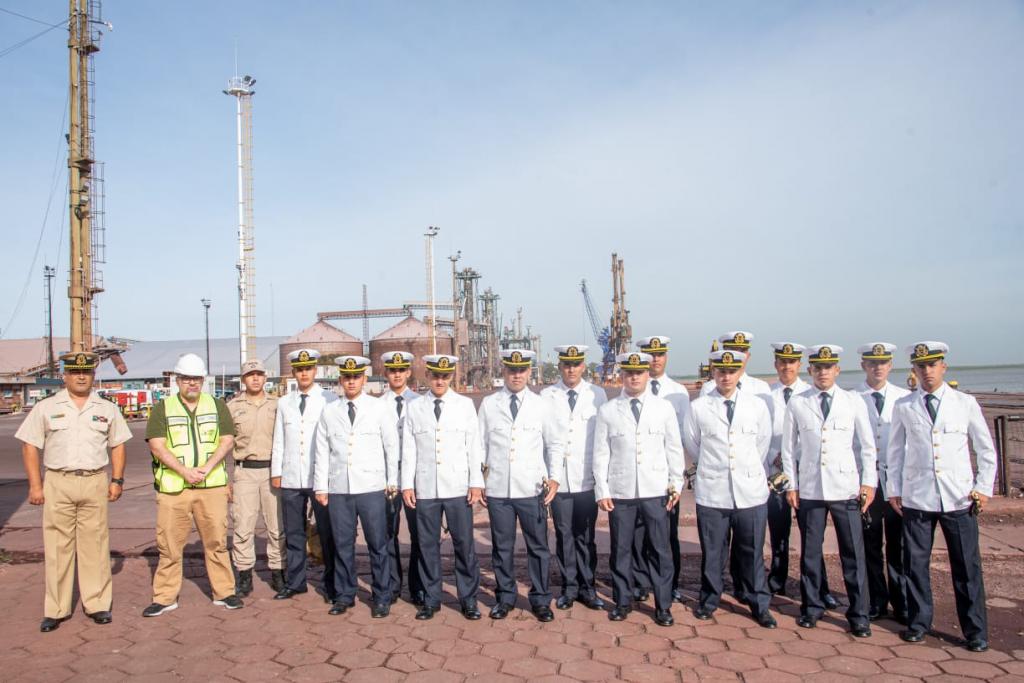 El grupo de cadetes mantuvo un encuentro con Comerio en la sala de reuniones de la sede administrativa portuaria. Luego de hacer una síntesis de la historia del Puerto y de su importancia en el desarrollo productivo de la región, la Provincia y el país, la presidenta respondió algunas inquietudes de los presentes acerca de la operatoria que se lleva adelante en la unidad productiva.