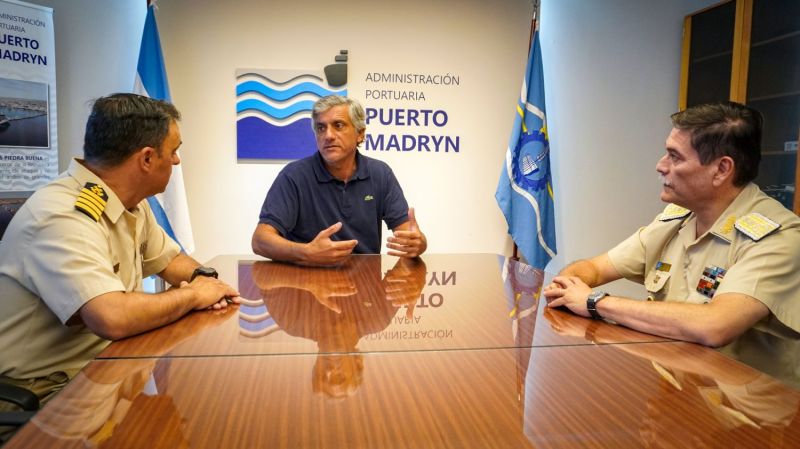 Durante la mañana del jueves, el titular de la Administración Portuaria de Puerto Madryn, Arq. Enrique Calvo, recibió la visita del Director de Región Sur de la Prefectura Naval Argentina, Prefecto General Carlos Esteban Salaburu, y al Jefe de la Prefectura Puerto Madryn, Prefecto Principal Christian Leonel Mirabete.