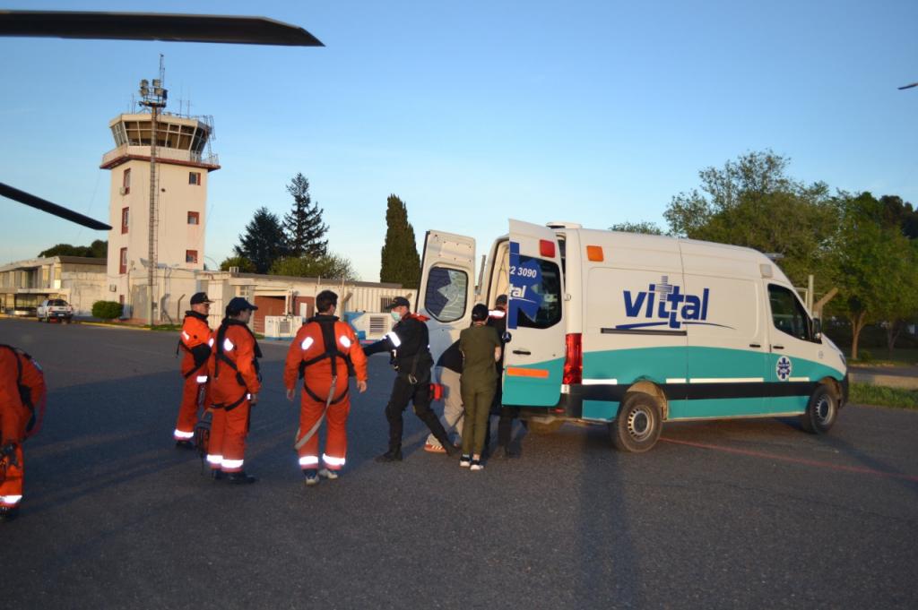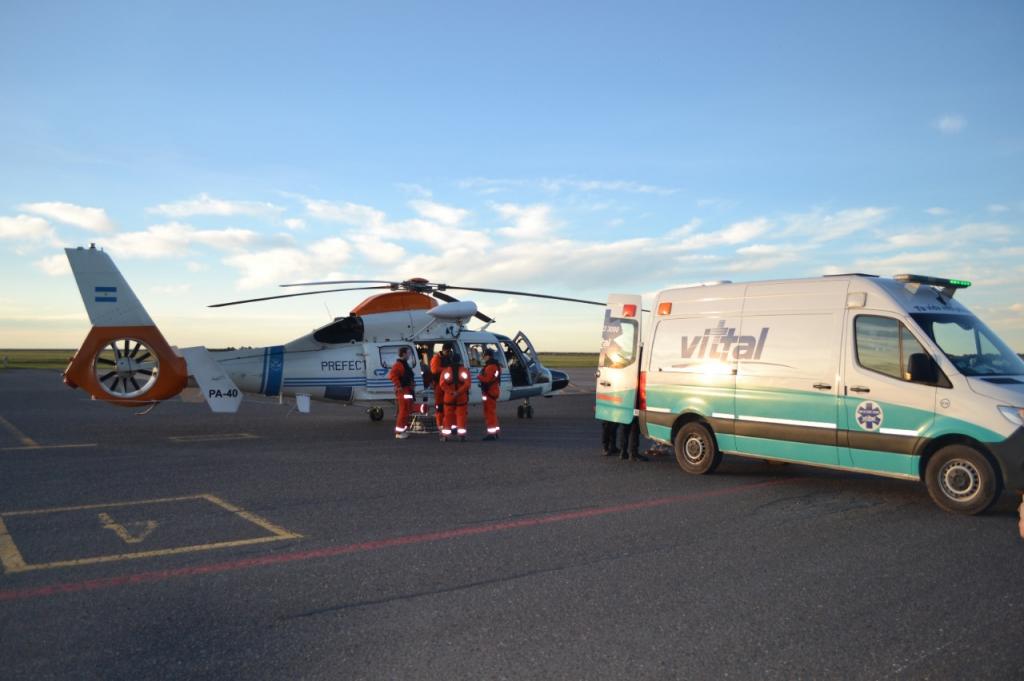 Con precisión milimétrica y en plena navegación, el helicóptero se posicionó sobre el buque, permitiendo que el personal especializado descendiera e izara al tripulante a bordo de la aeronave. Allí recibió las primeras atenciones médicas en vuelo y fue trasladado hasta el aeropuerto de Trelew, donde una ambulancia lo esperaba para derivarlo al hospital.
