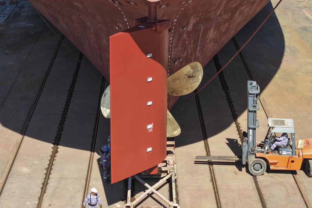 Tandanor finalizó la reconstrucción de la pala de timón y el mantenimiento general de un buque granelero
