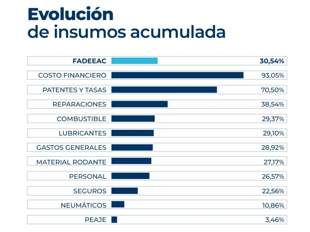 También se destacan los incrementos en Neumáticos (3,83%) y Combustible (3,10%) -el rubro de mayor incidencia en la estructura de costos-, que acumula un aumento del 21% en los últimos cinco meses, con alzas consecutivas desde junio. A pesar de esta dinámica, continúa vigente el diferimiento en la actualización de los impuestos específicos al gasoil, prorrogado por el Decreto 782/25 durante noviembre.