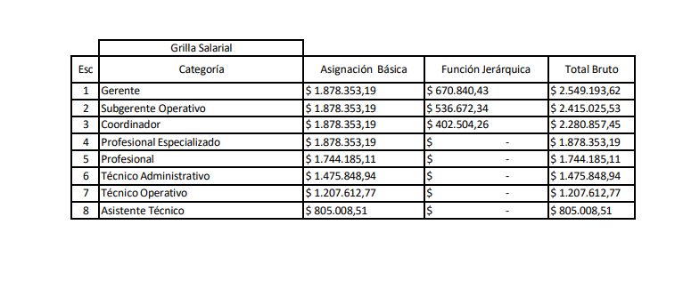 Sin embargo, hasta ahora solo estaban definidas las remuneraciones de los cargos superiores. El Poder Ejecutivo señaló que para que la Agencia pueda operar plenamente (en un contexto en el que concentra funciones críticas del sistema portuario y de la vía navegable) era necesario establecer las categorías laborales y la grilla salarial del resto del personal, en tanto se desarrolla la negociación sectorial para un convenio colectivo específico.