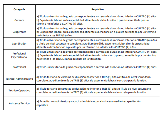 Las categorías escalafonarias que integrarán el esquema laboral de la ANPyN (Anexo I).