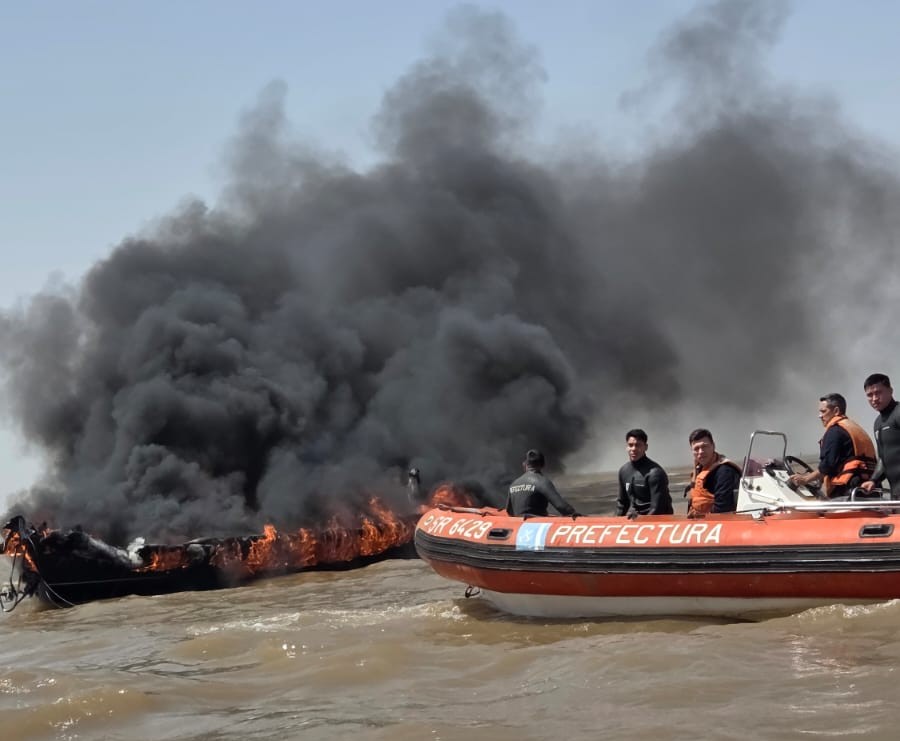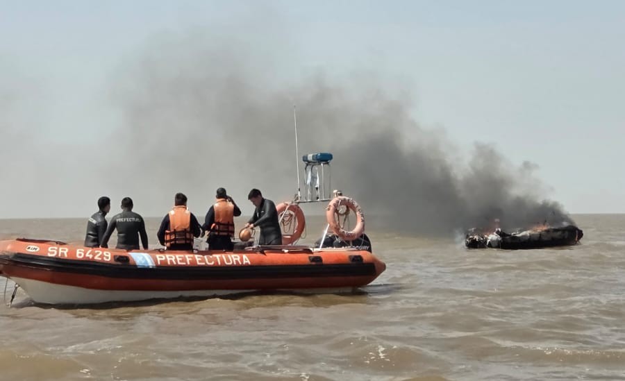 Prefectura rescató a dos personas de una embarcación en llamas
