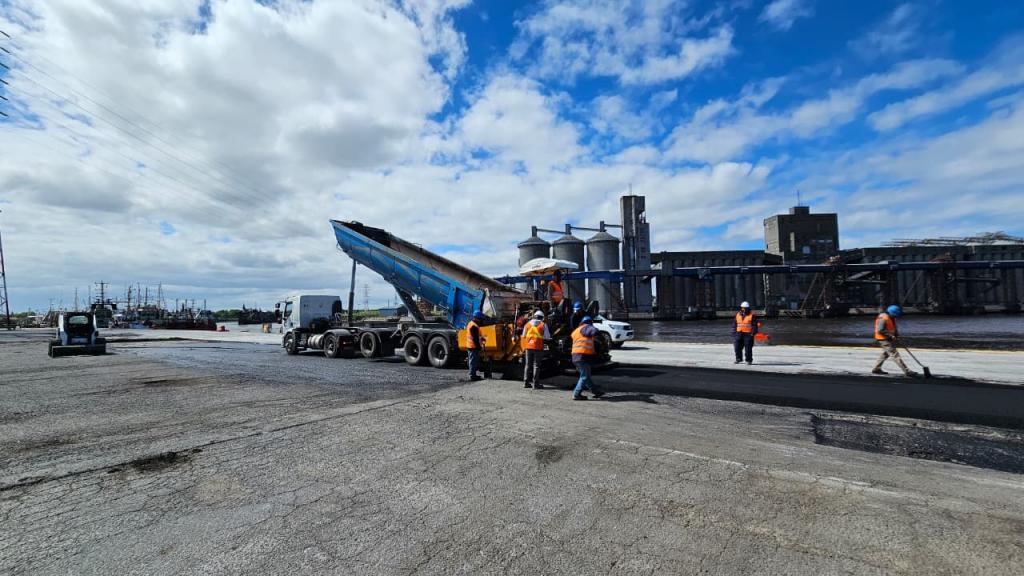 Dicha acción se llevó adelante debido a que la superficie de circulación se encontraba con un importante deterioro, producto de la circulación de camiones en la operatoria de la descarga de fertilizante o la carga de subproductos. Esto afectaba los tiempos de movimiento de mercaderías, lo que conllevaba mayores tiempos operativos en la zona portuaria.