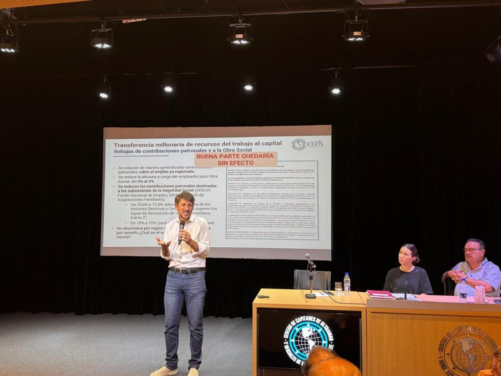 En una charla organizada por el Centro de Capitanes de Ultramar y Oficiales de la Marina Mercante, el economista Hernán Letcher, director del Centro de Economía Política Argentina (CEPA), analizó las consecuencias económicas de la reforma laboral impulsada por el Gobierno y advirtió que el proyecto “modifica la dinámica histórica de negociación en la Argentina”.