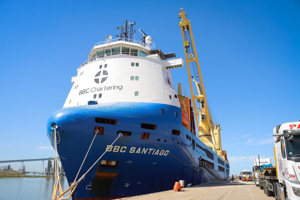 El Consorcio de Gestión del Puerto de Bahía Blanca destacó una nueva operación que consolida al enclave como nodo logístico estratégico para el desarrollo energético nacional. Amarrado en el Sitio 5, el buque BBC Santiago descarga equipamiento de gran porte destinado a proyectos vinculados con Vaca Muerta, proveniente del Puerto de Houston.