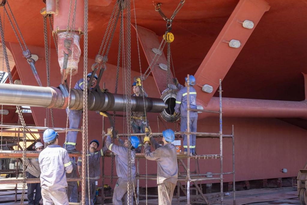 En el sistema de propulsión y gobierno, se trabajó sobre componentes como timones tipo Becker, líneas de eje y hélices de paso controlable (CPP). Las tareas incluyeron desmontaje, inspección y reacondicionamiento, junto con controles dimensionales, mecanizados, calibraciones y renovación de sistemas de sellado. Parte de estos procesos se realizaron en taller, permitiendo una verificación integral previa a su reinstalación.