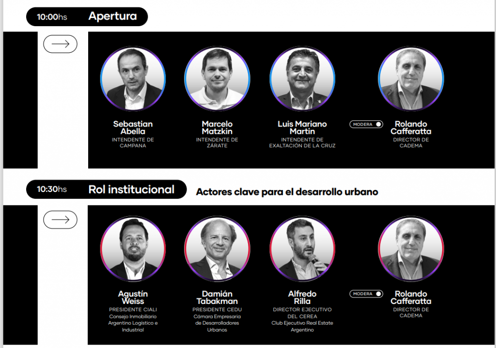• 10:30 | Panel institucional: actores clave para el desarrollo urbano, con la participación de miembros directivos de CIALI, CEDU y CEREA. El panel será moderado por Rolando Cafferatta, director de CADEMA.