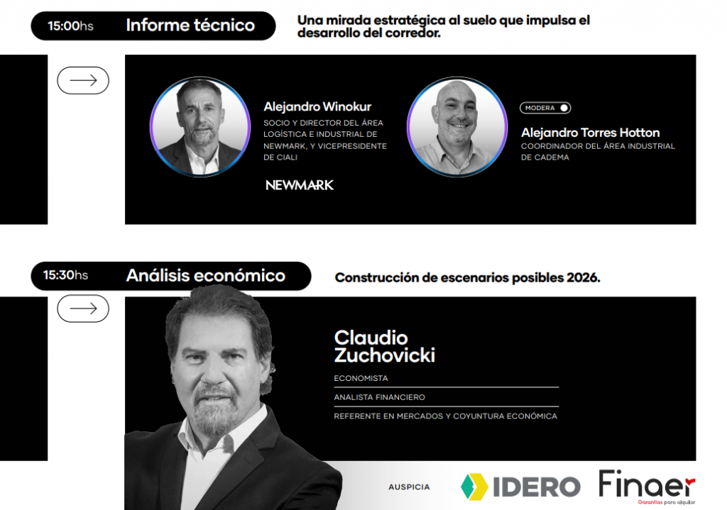 • 15:00 | Informe técnico sobre suelo industrial y logístico, con una mirada estratégica sobre uno de los factores clave para el desarrollo del corredor.