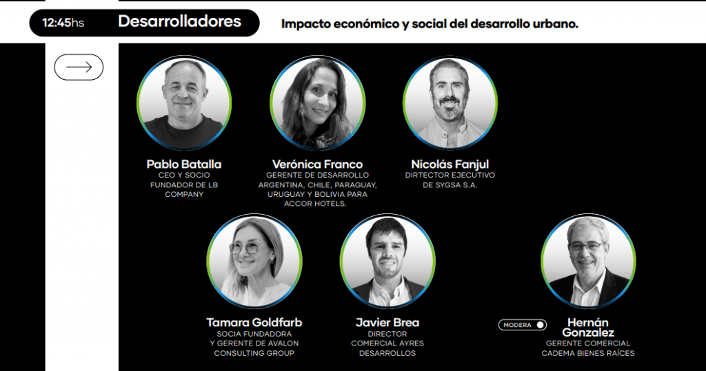 • 12:45 | Panel sobre impacto económico y social del desarrollo urbano, con foco en tendencias del mercado, oportunidades de inversión y nuevas tipologías de proyectos.